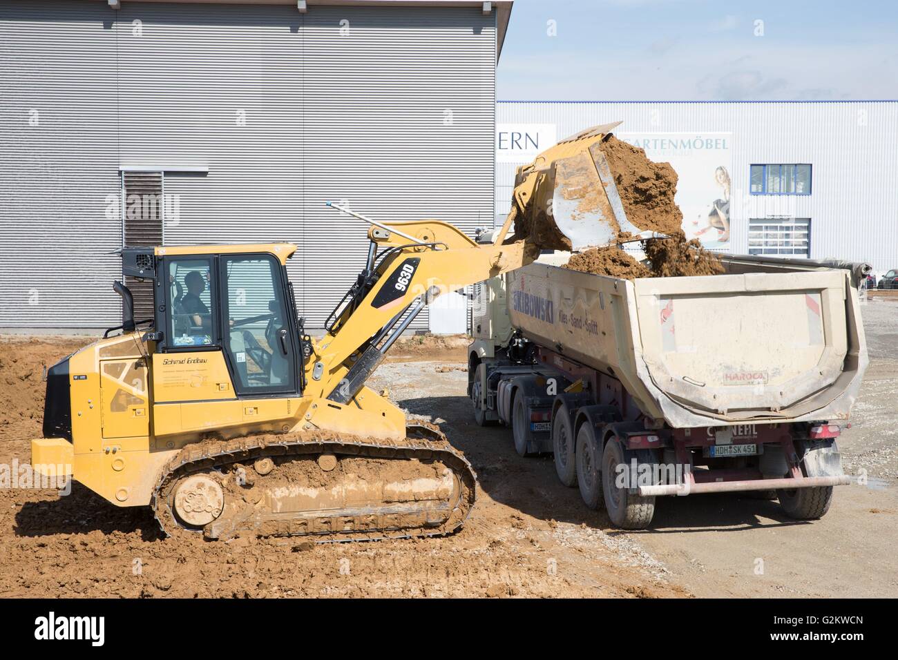 Caterpillar 963d Trackloader Loading Earth Into A Dump Truck Affalterbach Germany Mrch 31 2016 Usage Worldwide Stock Photo Alamy